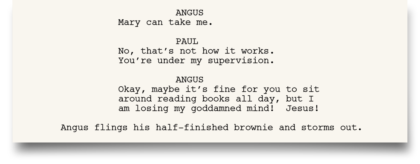 « Angus est trop énervé et dans son propre monde, en tant qu’adolescent, pour comprendre et reconnaître ce qui se passe », dit Hemingson à propos du personnage impétueux de Sessa, qui ne reconnaît pas l’inquiétude de Paul à propos de la fête, voyant seulement comment cela l’affecte. personnellement.