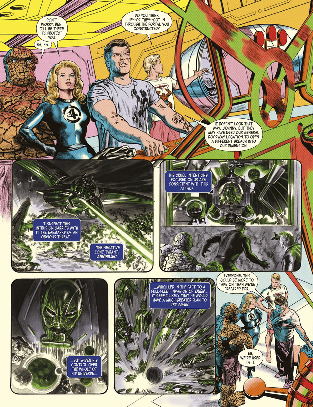 L’histoire utilise comme point de départ les incidents relatés dans le désormais classique « This Man… This Monster! » histoire racontée en 1961 Les quatre Fantastiques non. 51. Dans la nouvelle histoire, le quartier général des Fantastic Four, le Baxter Building, fait face à une alerte d’intrus, entraînant les héros dans une aventure qui les emmène dans la zone négative, une dimension extraterrestre composée d’anti-matière.