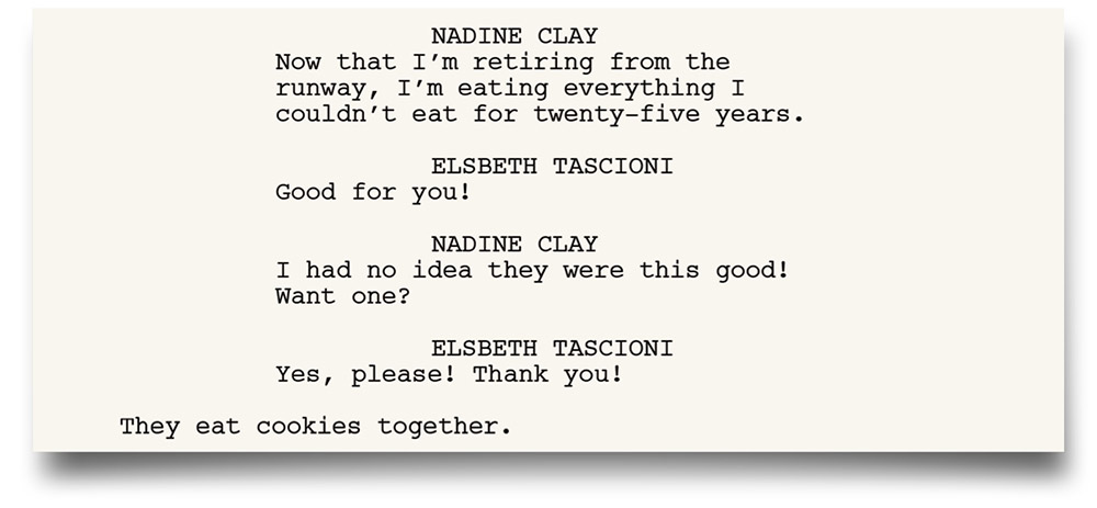 « J’ai toujours l’impression qu’un public regarde quelque chose en se demandant « Pourquoi est-ce que je reçois cette information ? » » précise Jonathan Tolins. Cette scène, qui voit notre héroïne rencontrer le designer Matteo Hart et le mannequin à la retraite Nadine Clay (joués respectivement par André De Shields et Laura Benanti), plonge le personnage principal dans le mystère central. « Cela amène Elsbeth dans la prochaine étape de son enquête, en développant une relation avec Nadine et en organisant également tout un défilé de mode Elsbeth amusant », poursuit Tolins. « Cela permet également à Nadine de devenir la coach mannequin d’Elsbeth, ce qui nous donnera la scène du chat et de la souris que nous faisons toujours. »