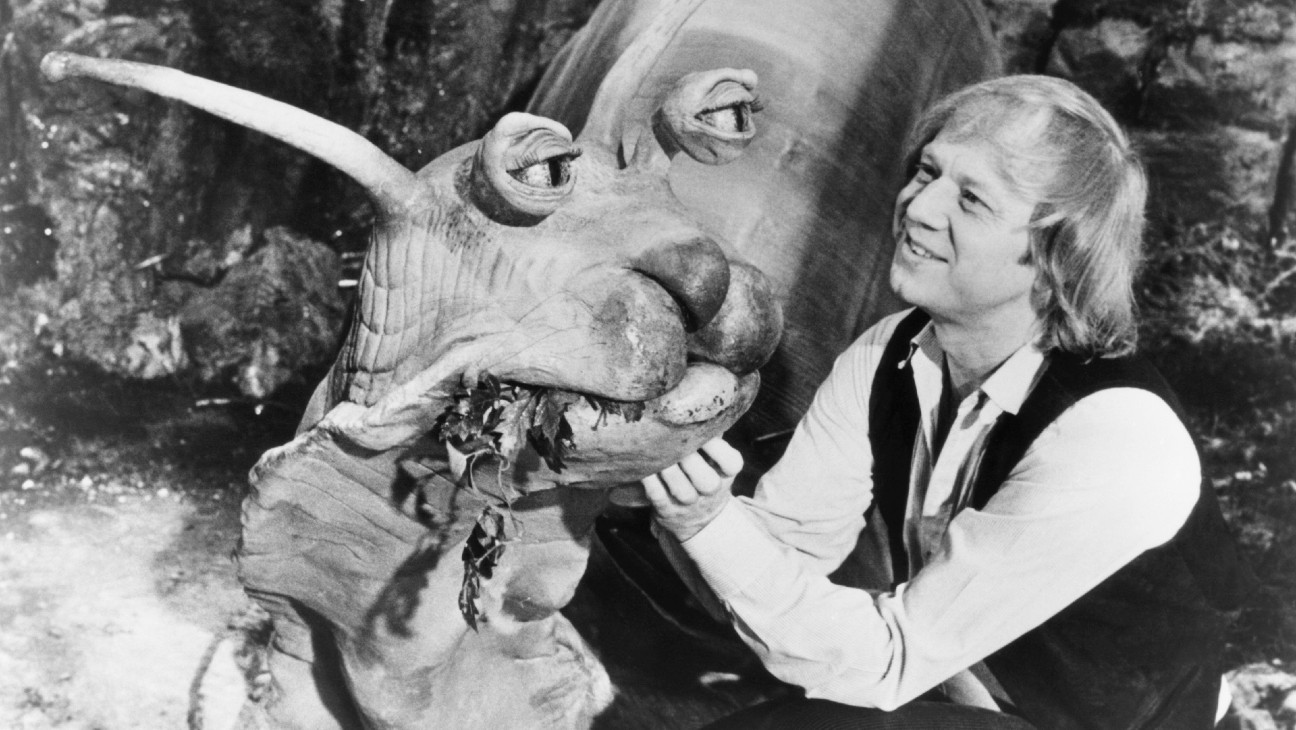 Le réalisateur Wolfgang Petersen avec l’escargot de course sur le tournage de L’histoire sans fin.